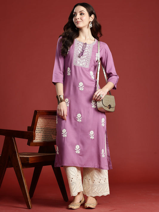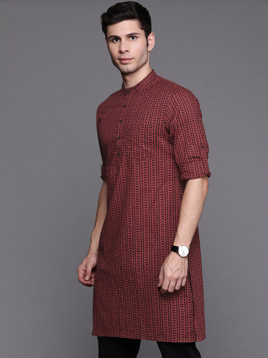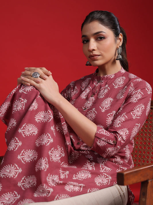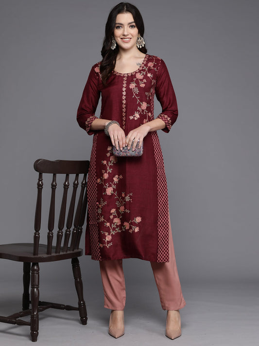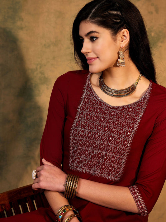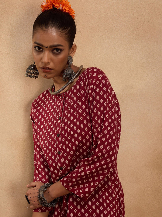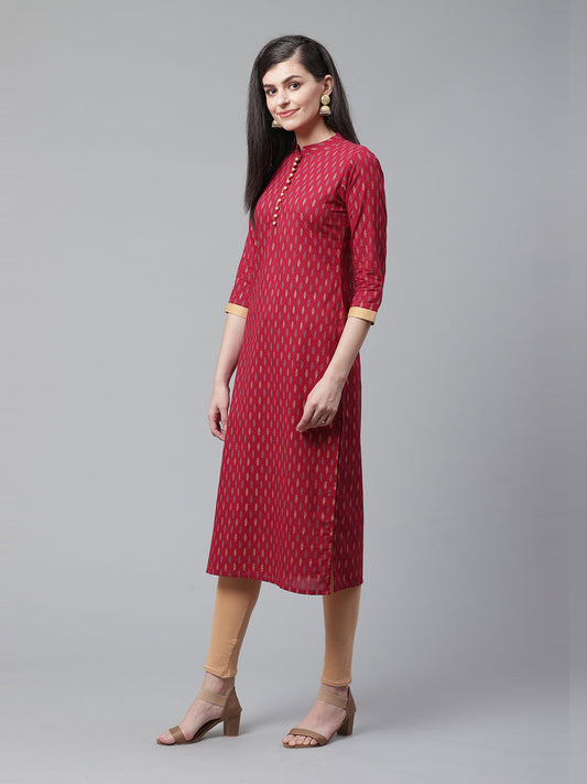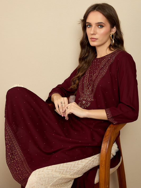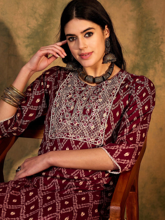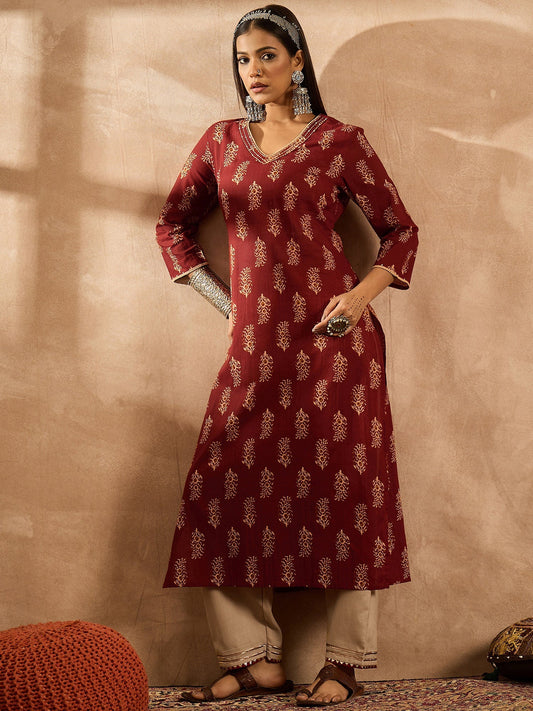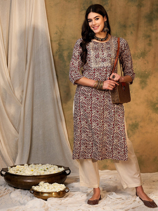 Maroon Ethnic Motifs Cotton Straight Kurtas