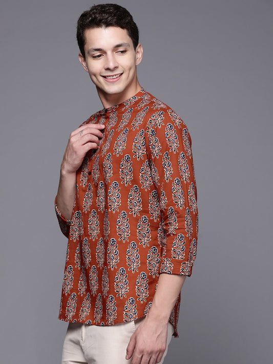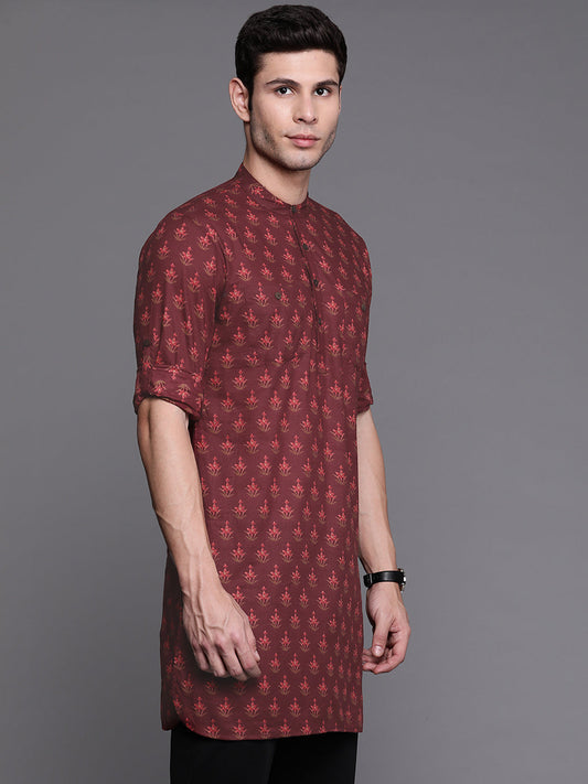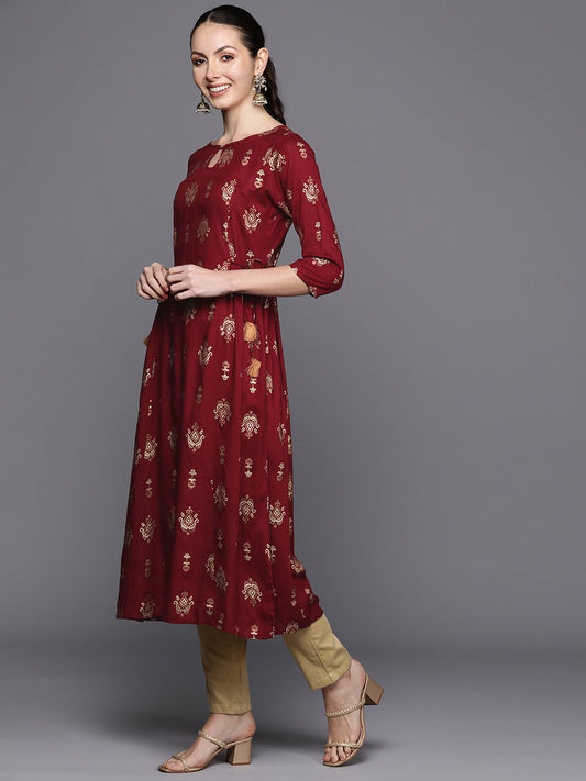 Maroon Ethnic Motifs Printed Tie-Up Detail A-Line Kurta