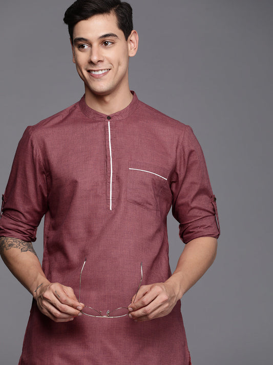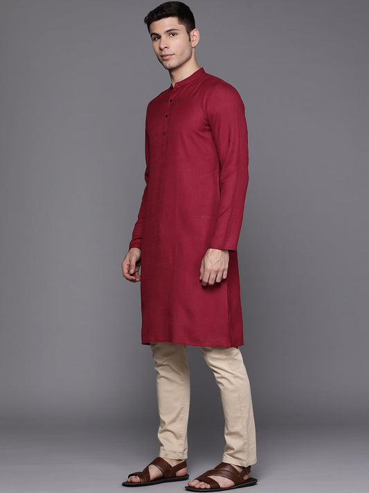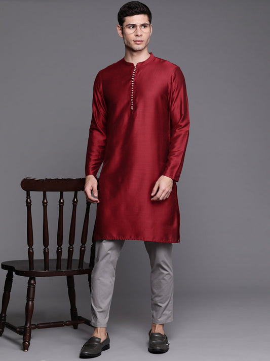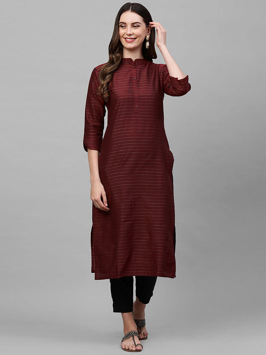 Maroon Solid Chanderi Cotton Straight Kurtas