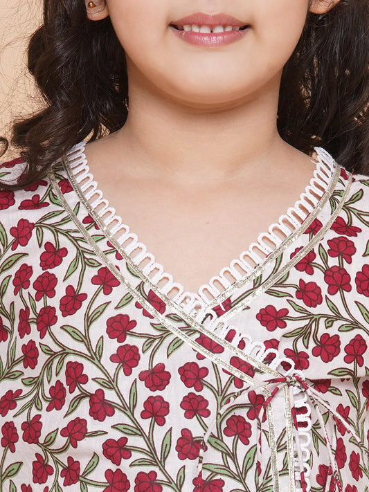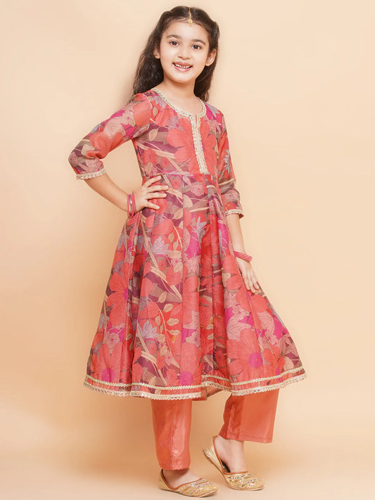 Girls Maroon & Gold Ethnic Motifs Printed Anarkali Kurta With Palazzos