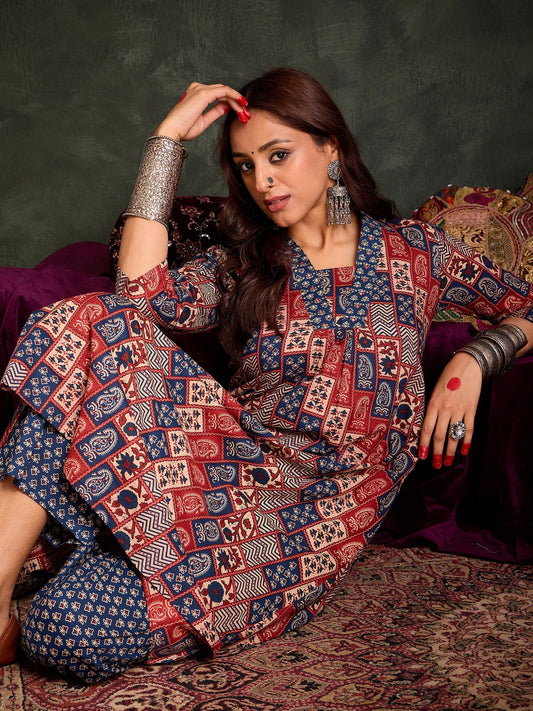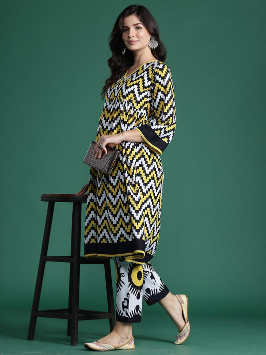 Multi Printed A-Line Kurta Trousers Set