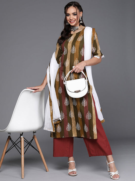 Brown Pure Cotton Floral Printed A-line Kurta Set