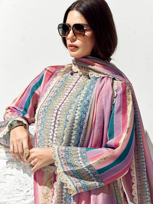 Multi Printed Straight Kurta Trouser With Dupatta Set