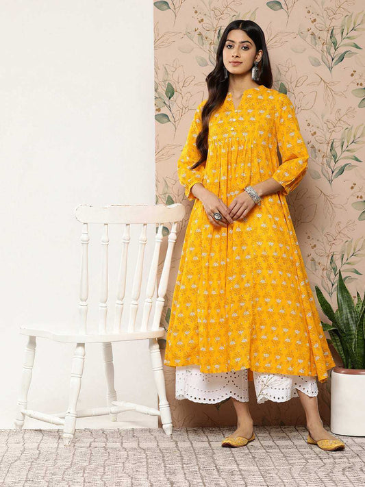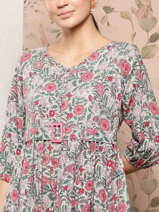 Cream Pure Cotton Floral Printed A-Line Tunic