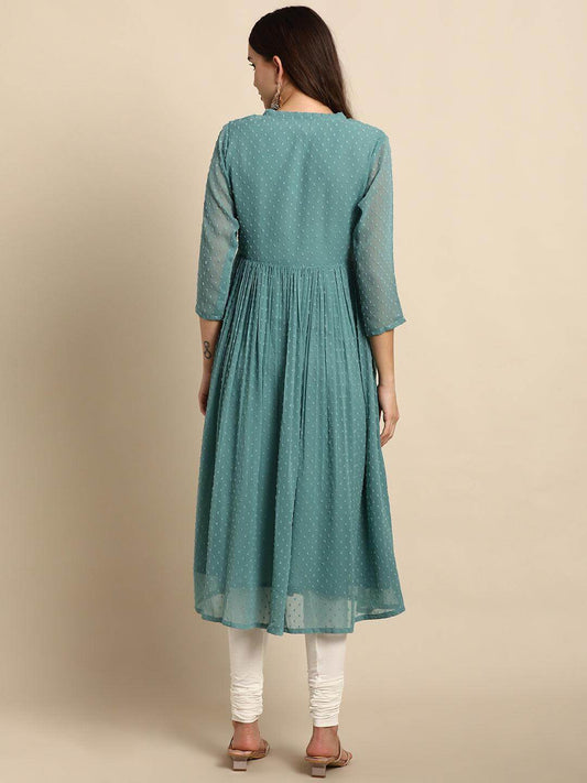 Silae Green Poly Chiffon Self Design Flared Kurta