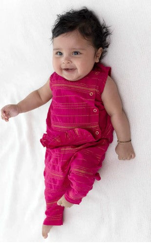 Girls Pink Floral Printed Angrakha Gotta Patti Kurta & Sharara set With Dupatta