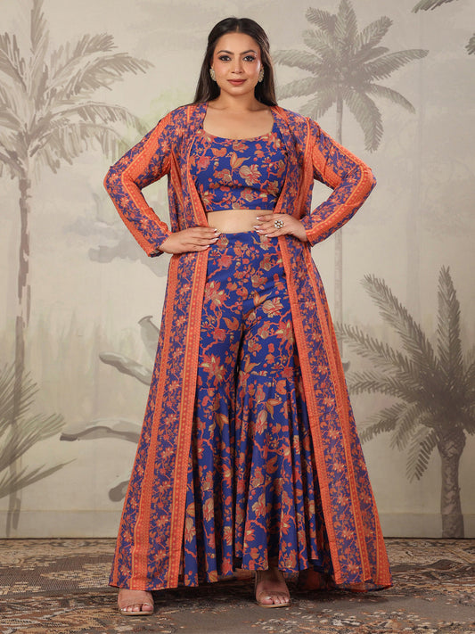Plus Size Navy Blue Georgette Floral Printed Co-Ord Set