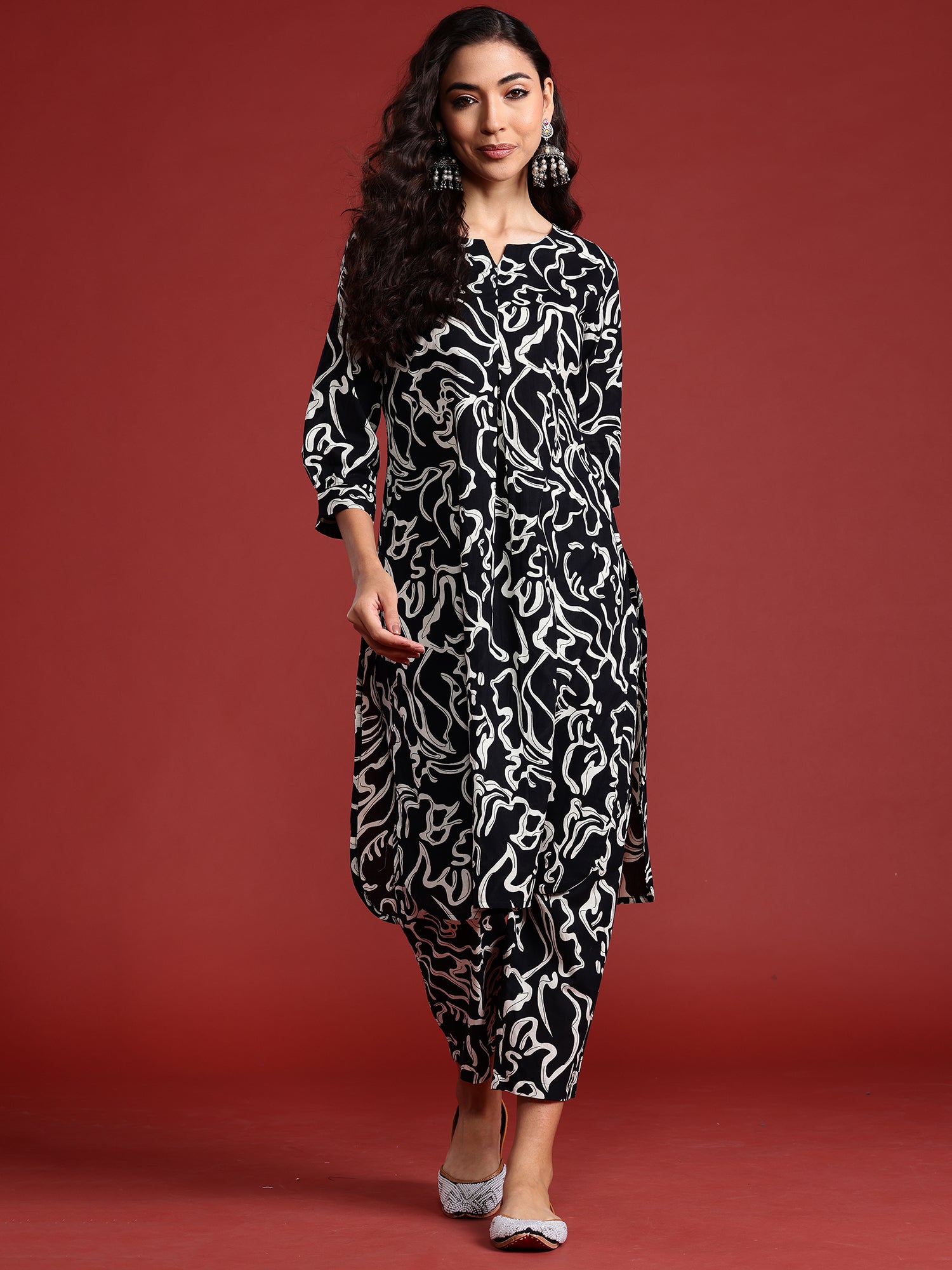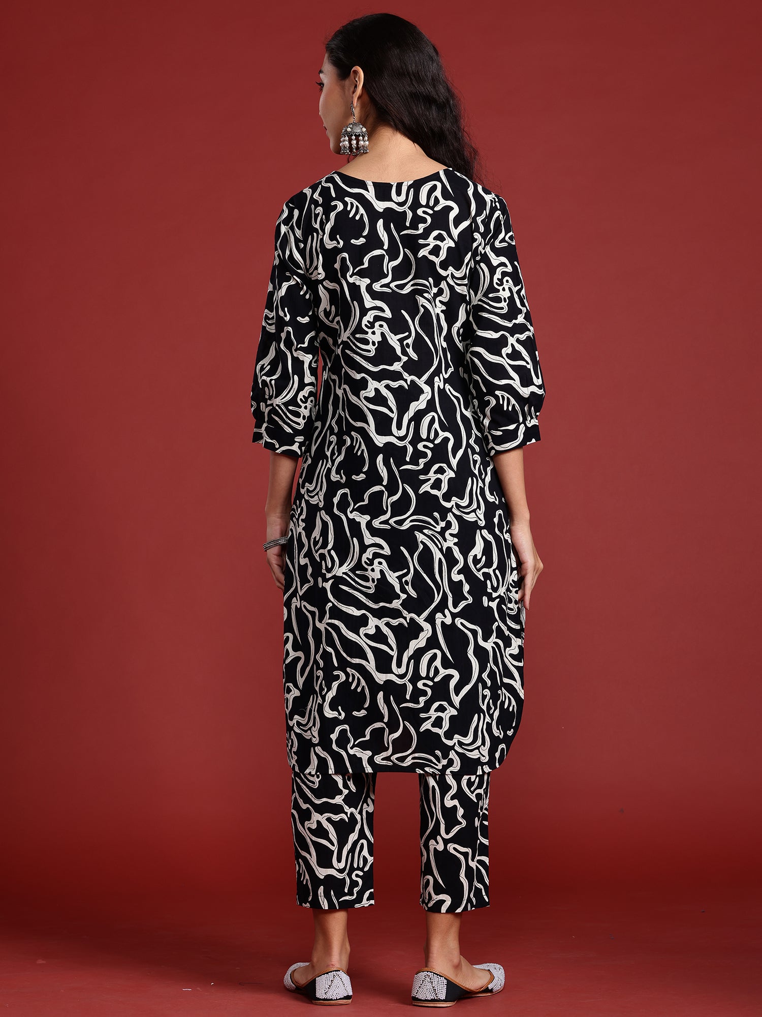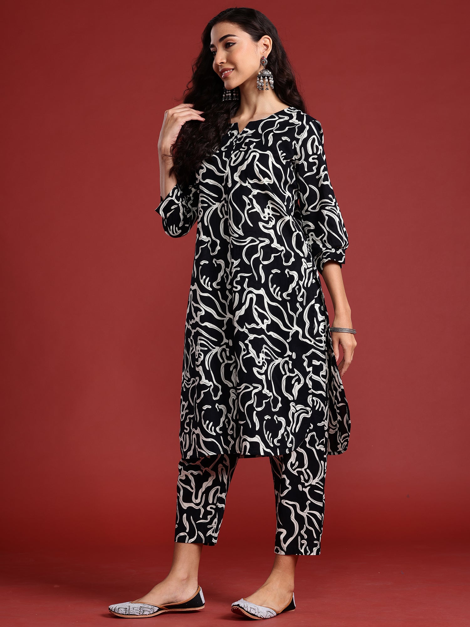 Indo Era Black Printed Smart Casual Co-Ords Set