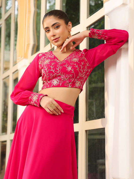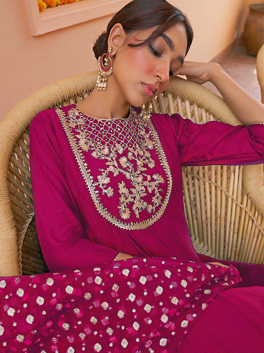Pink Silk Blend Yoke Embroidered Anarkali Kurta Set