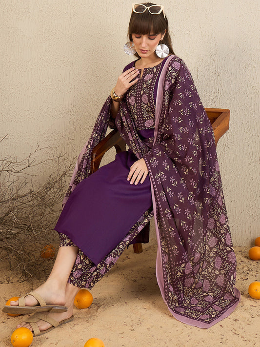 Indo Era Burgundy Printed Straight Kurta Salwar With Dupatta set