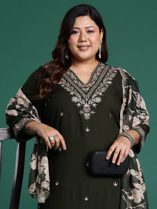 Green Embroidered A-Line Kurta Trousers With Dupatta set