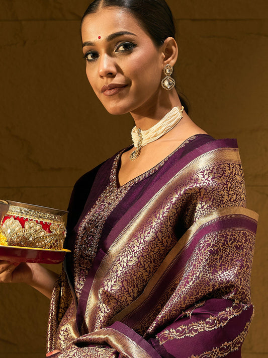 Burgundy Embroidered Anarkali Kurta Trousers With Dupatta Set