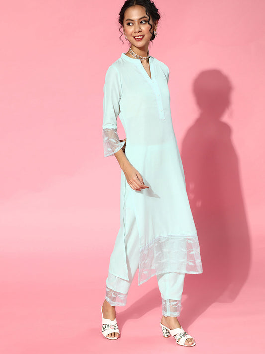 Blue Embroidered Straight Kurta Trousers With Dupatta set