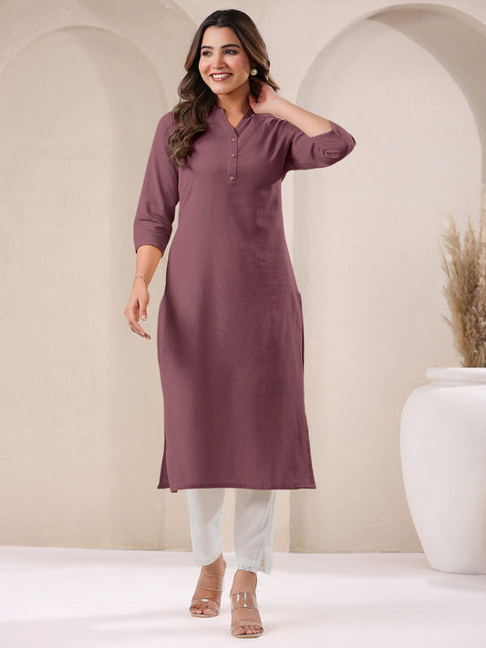 Mauve Cotton Solid Straight Kurta