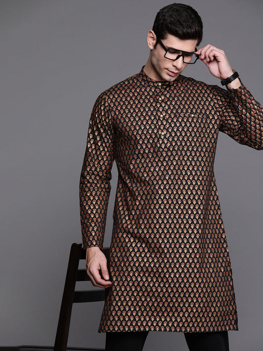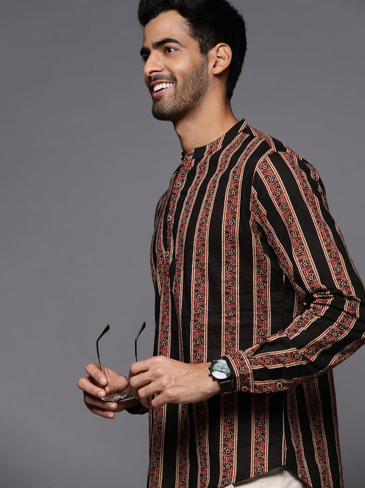 Indo Era Black Ethnic Motifs Cotton Straight Kurtas
