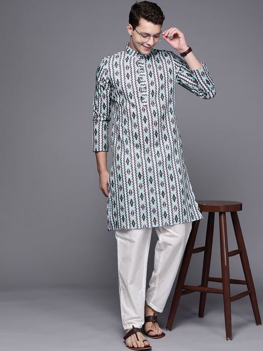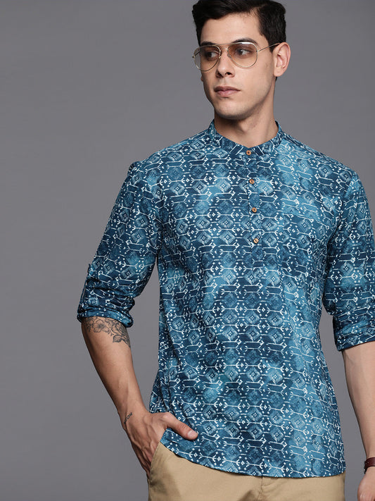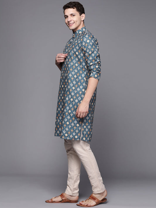 Indo Era Blue Ethnic Motifs Cotton Straight Kurtas