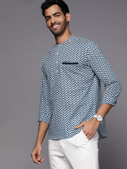 Indo Era Blue Chevron Cotton Straight Kurtas