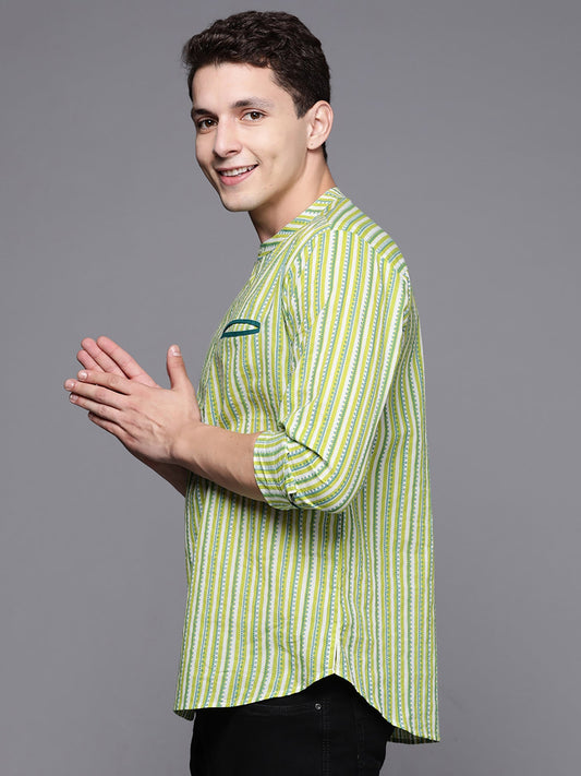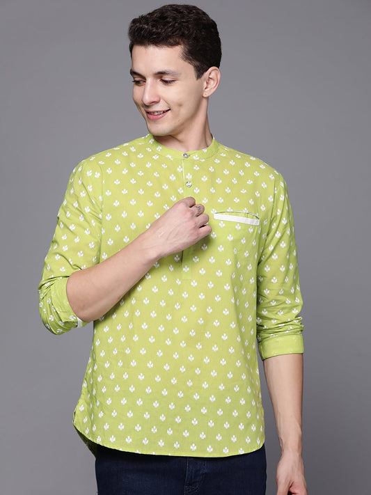 Indo Era Fluorescent Green Printed Cotton Straight Kurtas
