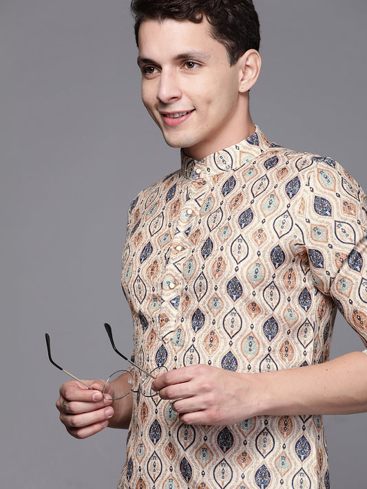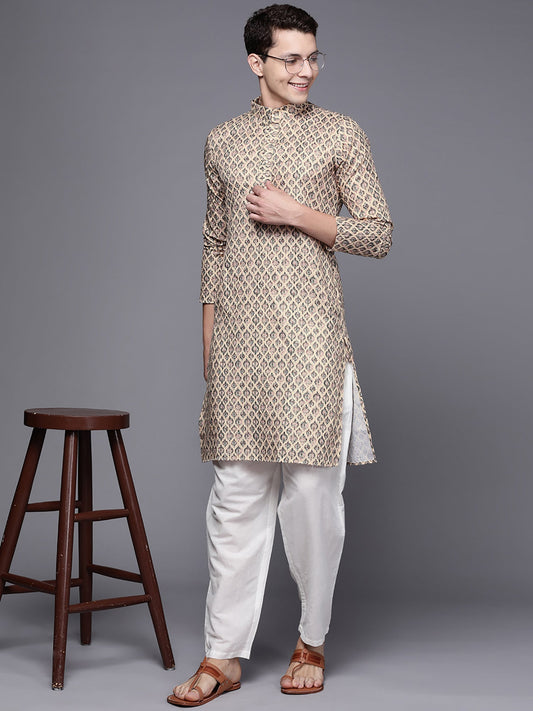 Indo Era Beige Ethnic Motifs Cotton Straight Kurtas
