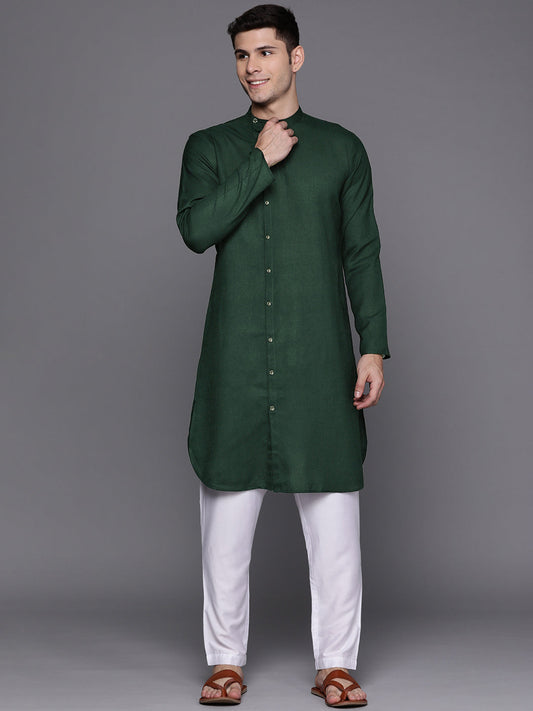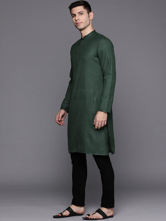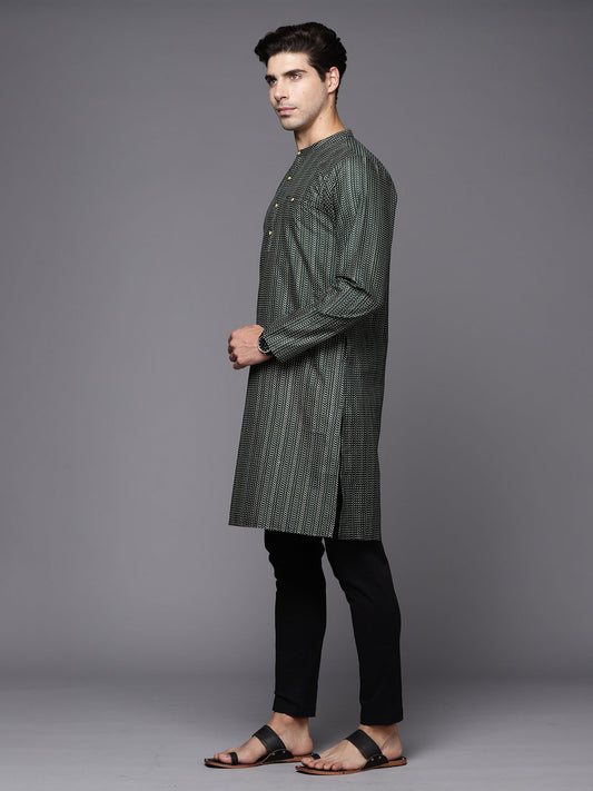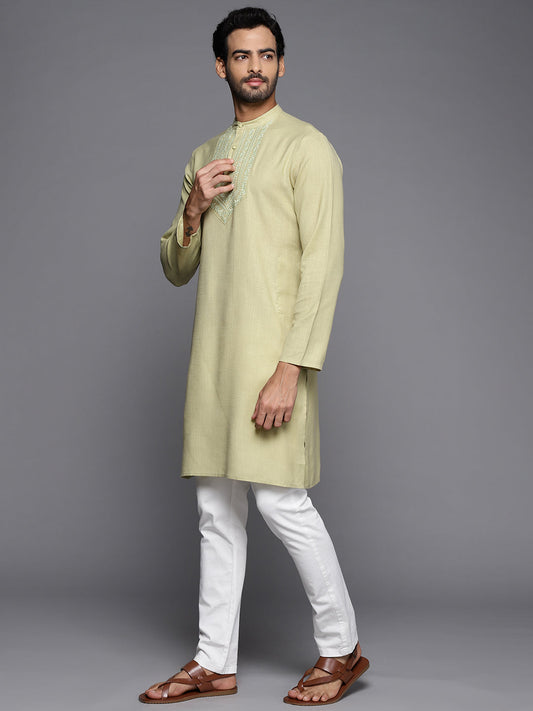 Indo Era Green Herringbone Cotton Straight Kurtas