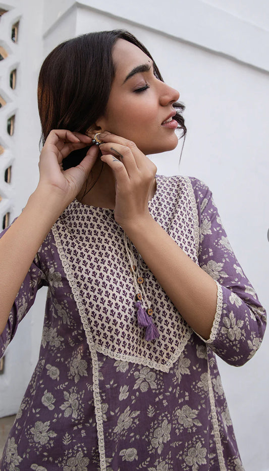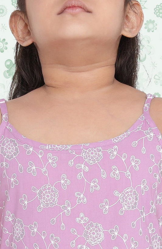 Girls Lavender Floral Printed Cotton Fit & Flare Dress