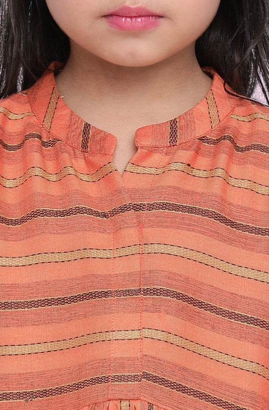 Girls Orange Striped Pure Cotton Fit & Flare Dress