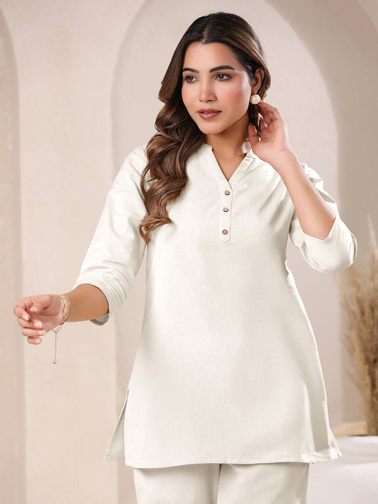 Off White Dobby Pure Cotton Self Design A-line Co-ords Set