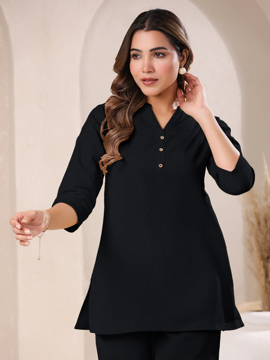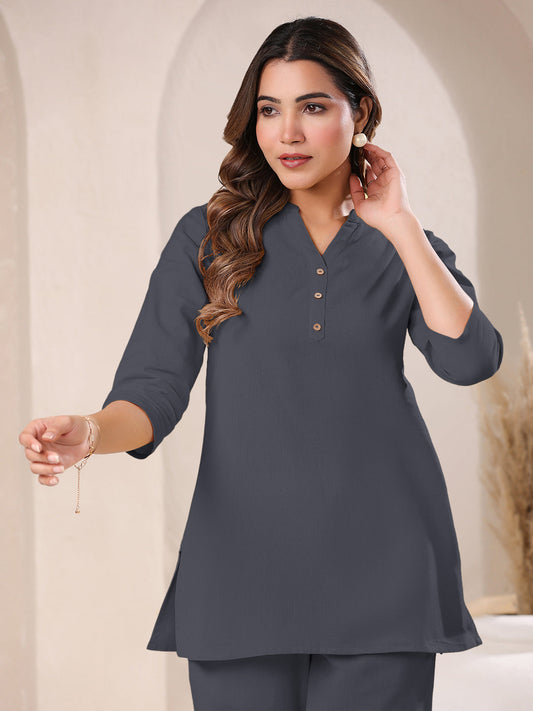 Navy Blue Cotton Solid A-line & Co-ord Set