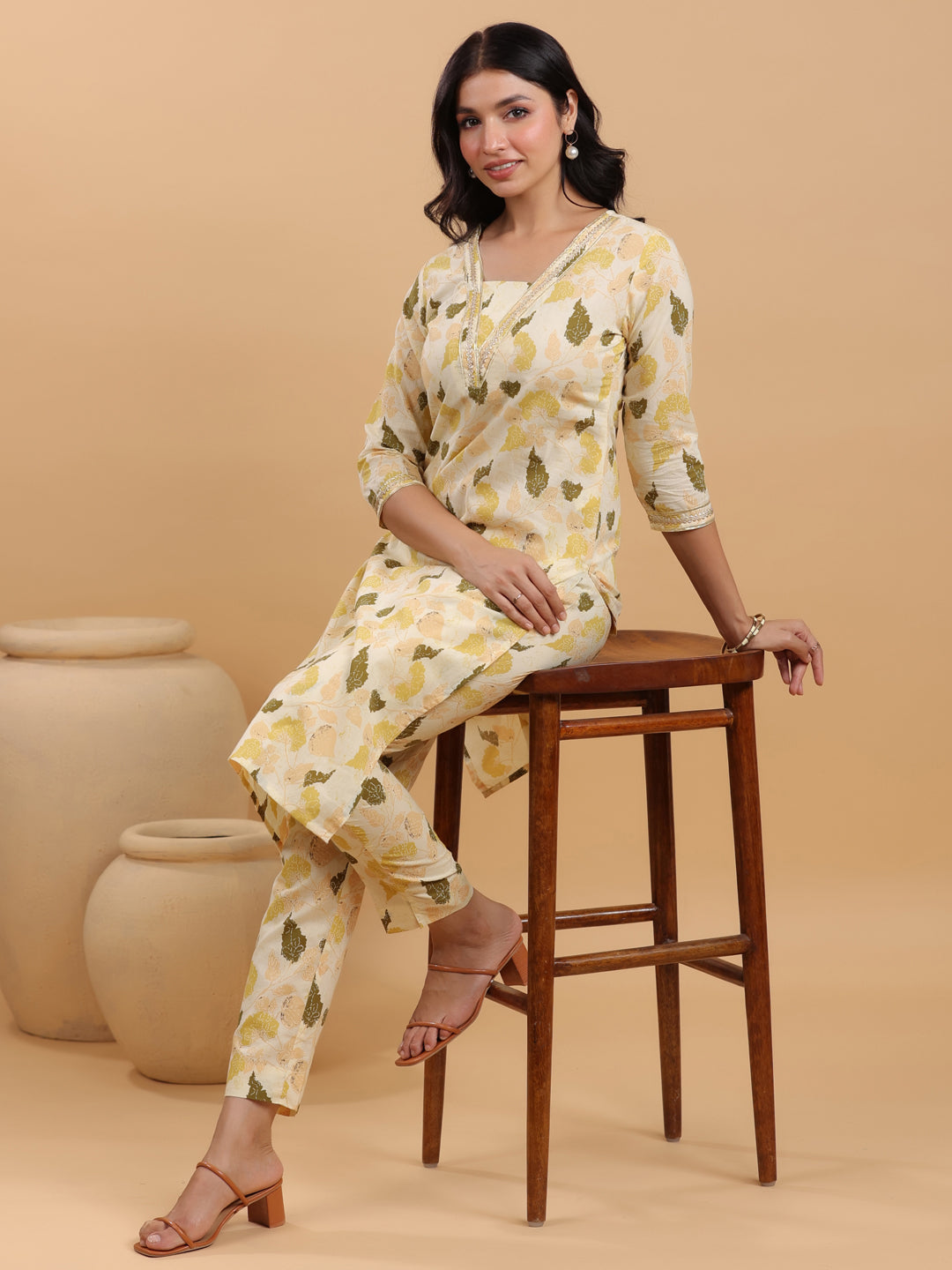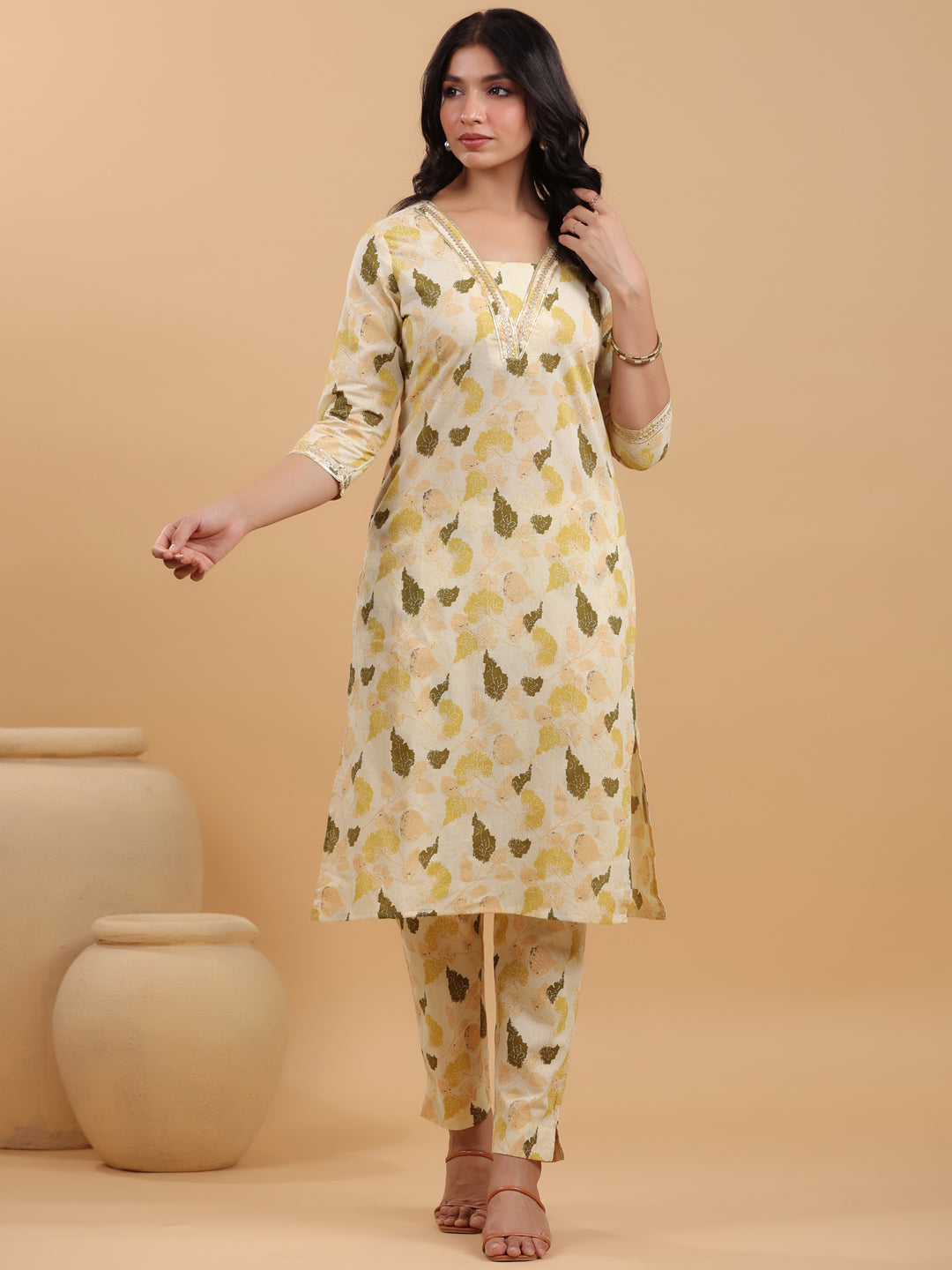 - Kurta Color : Cream | Pant Color : Cream