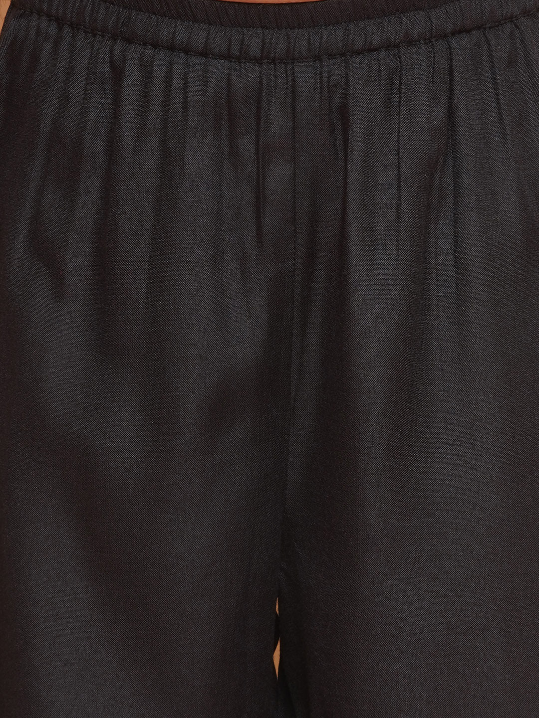 Black Ethnic motifs Printed Alia design Kurta has a V- Neck, sleeveless Knee length with flared hem with Elasticated waistband Sharara & Dupatta.