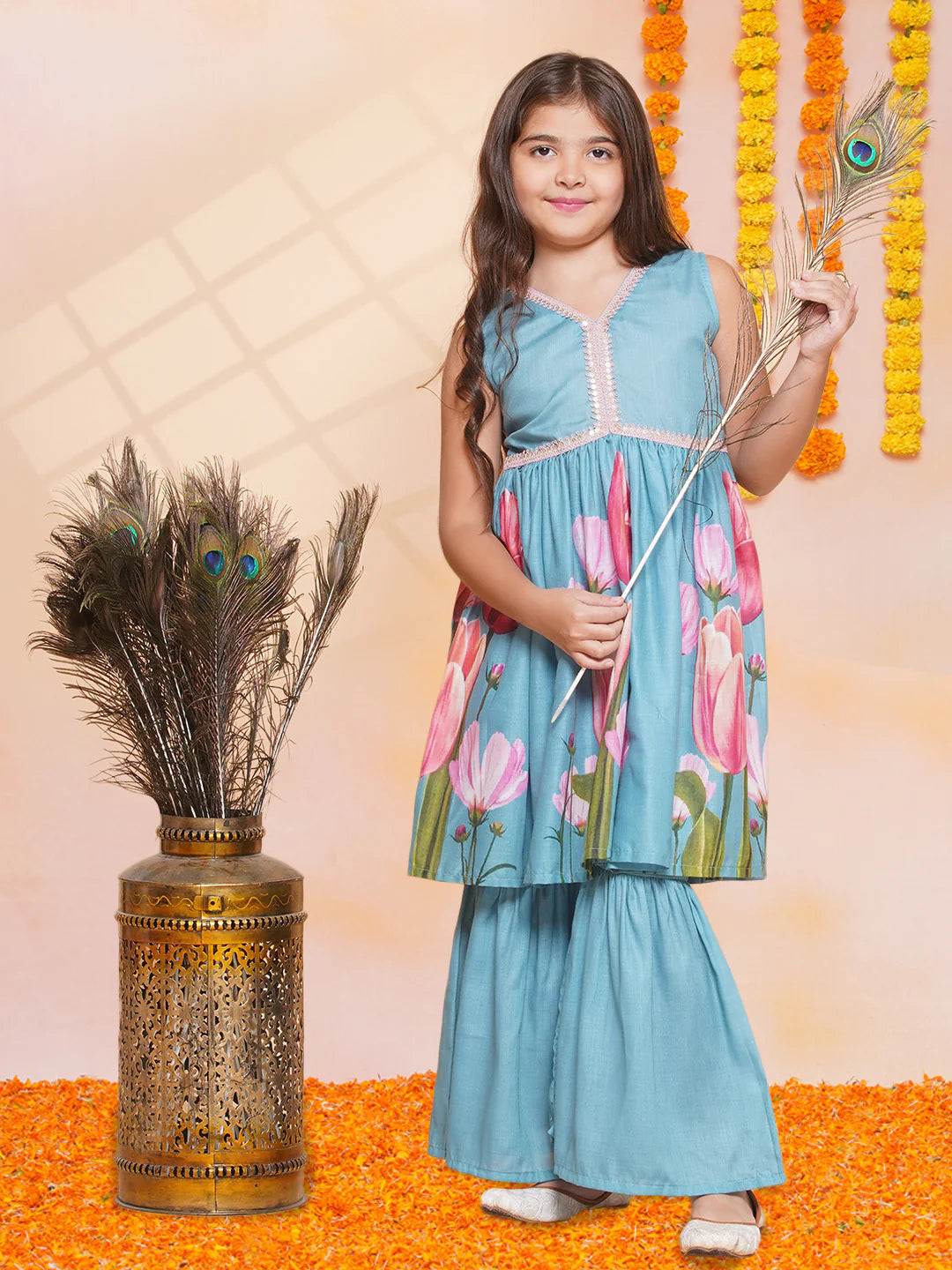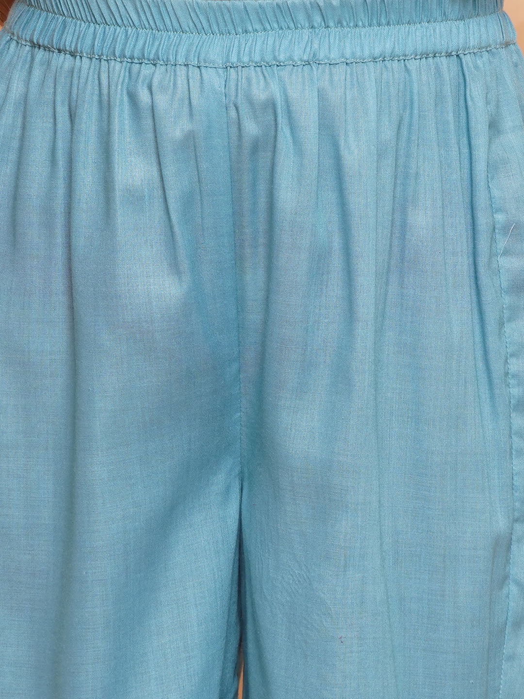 Girls Turquoise Blue Printed Alia Design Kurta & Sharara