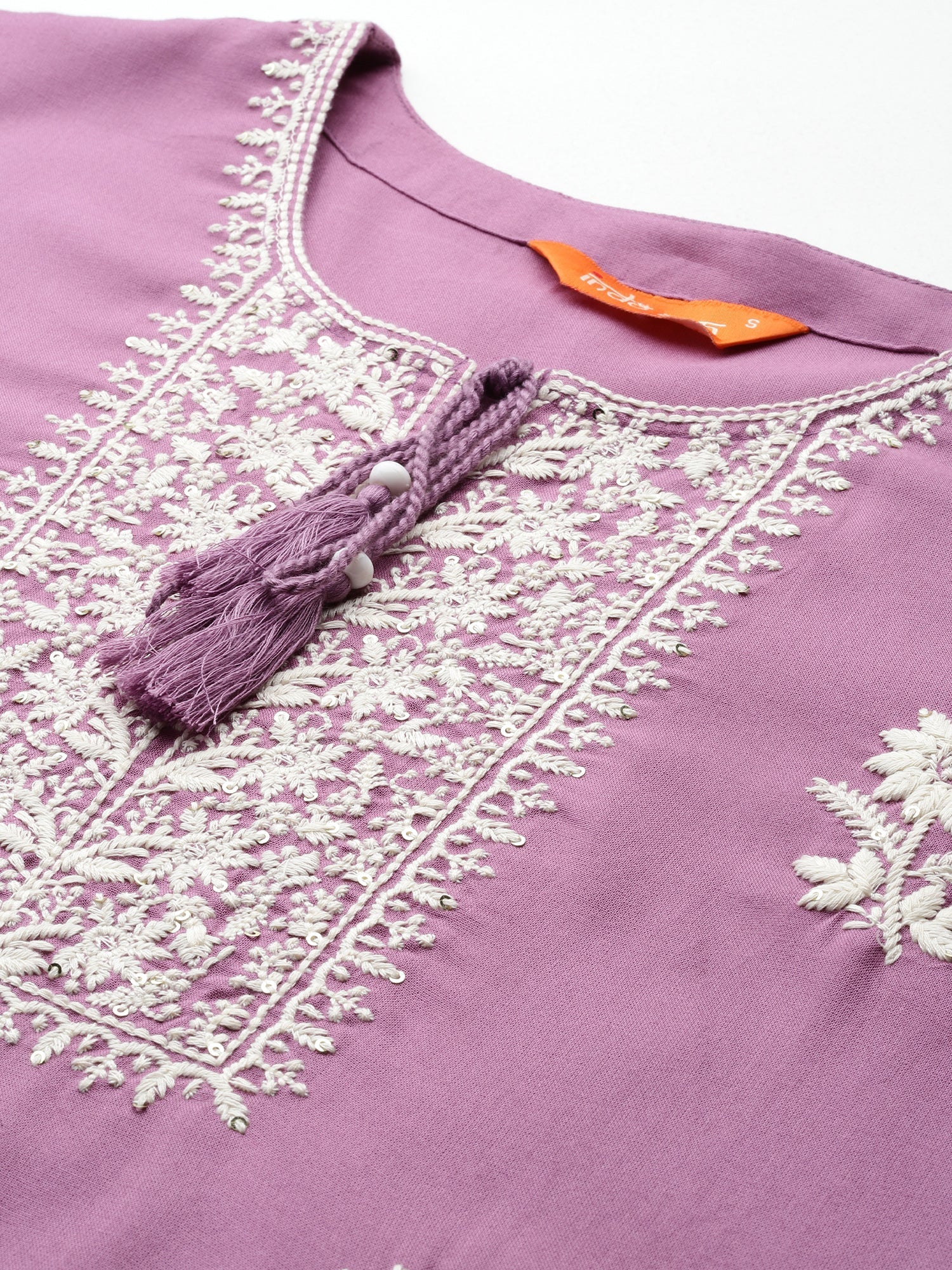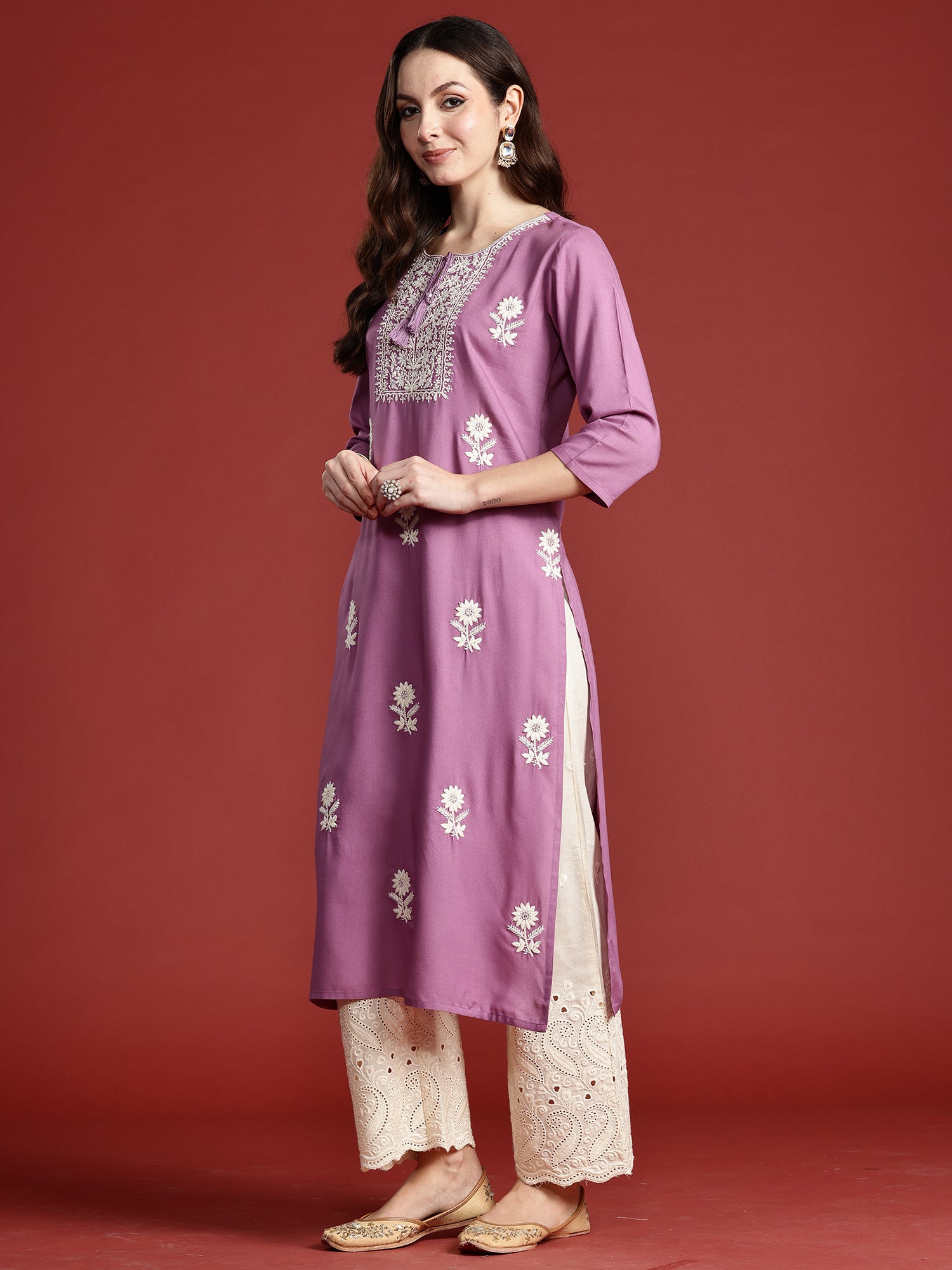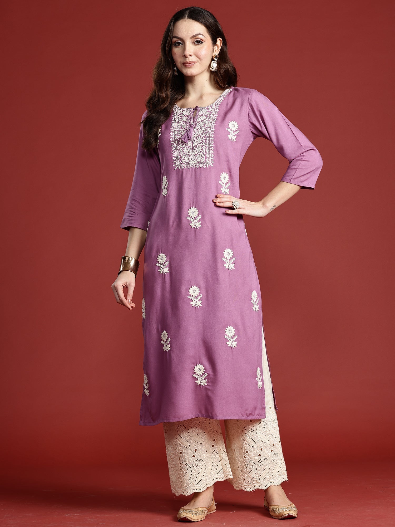 Lavender Embroidered Straight Kurtas