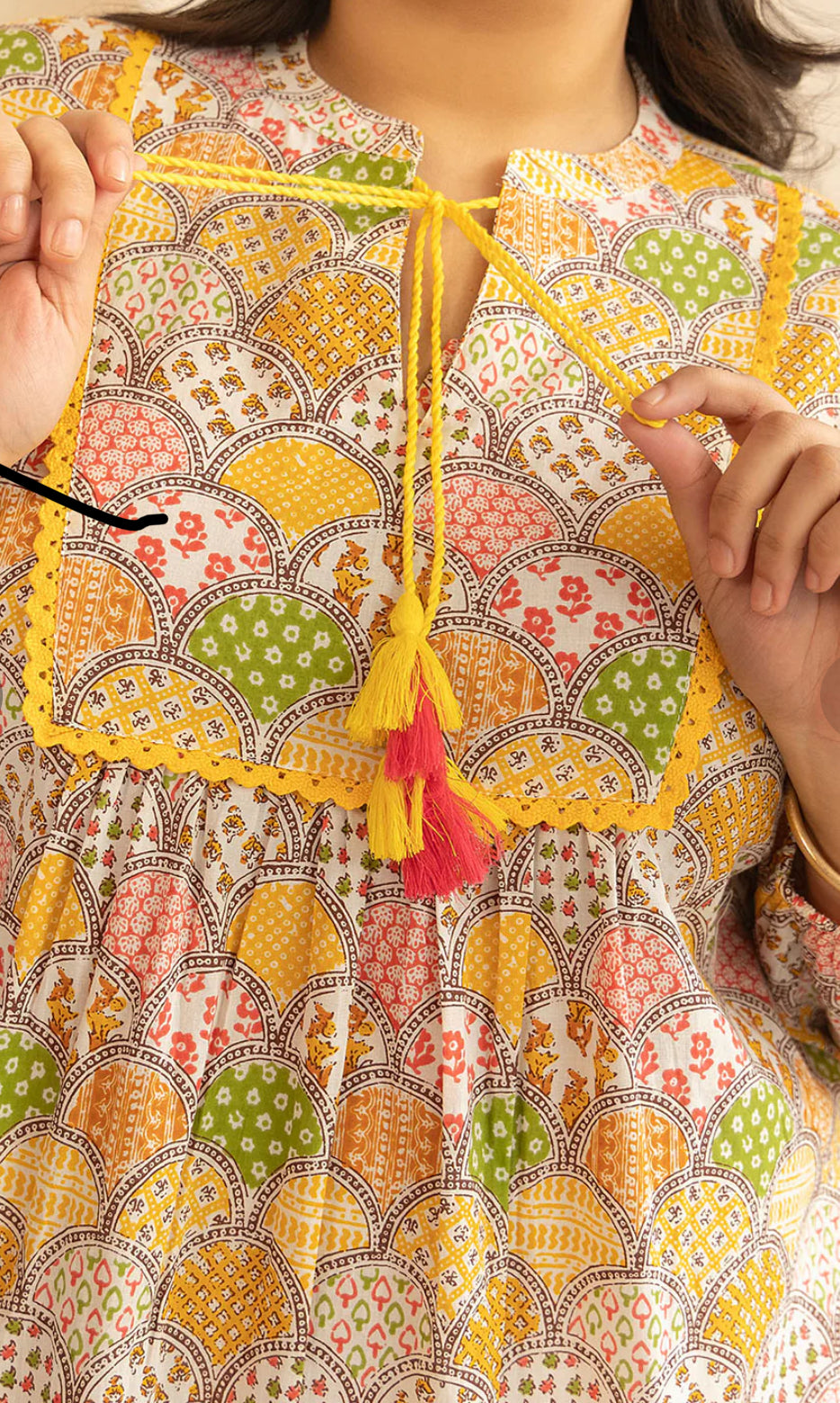 Multicolor Cotton Ethnic Motifs A Line Kurta