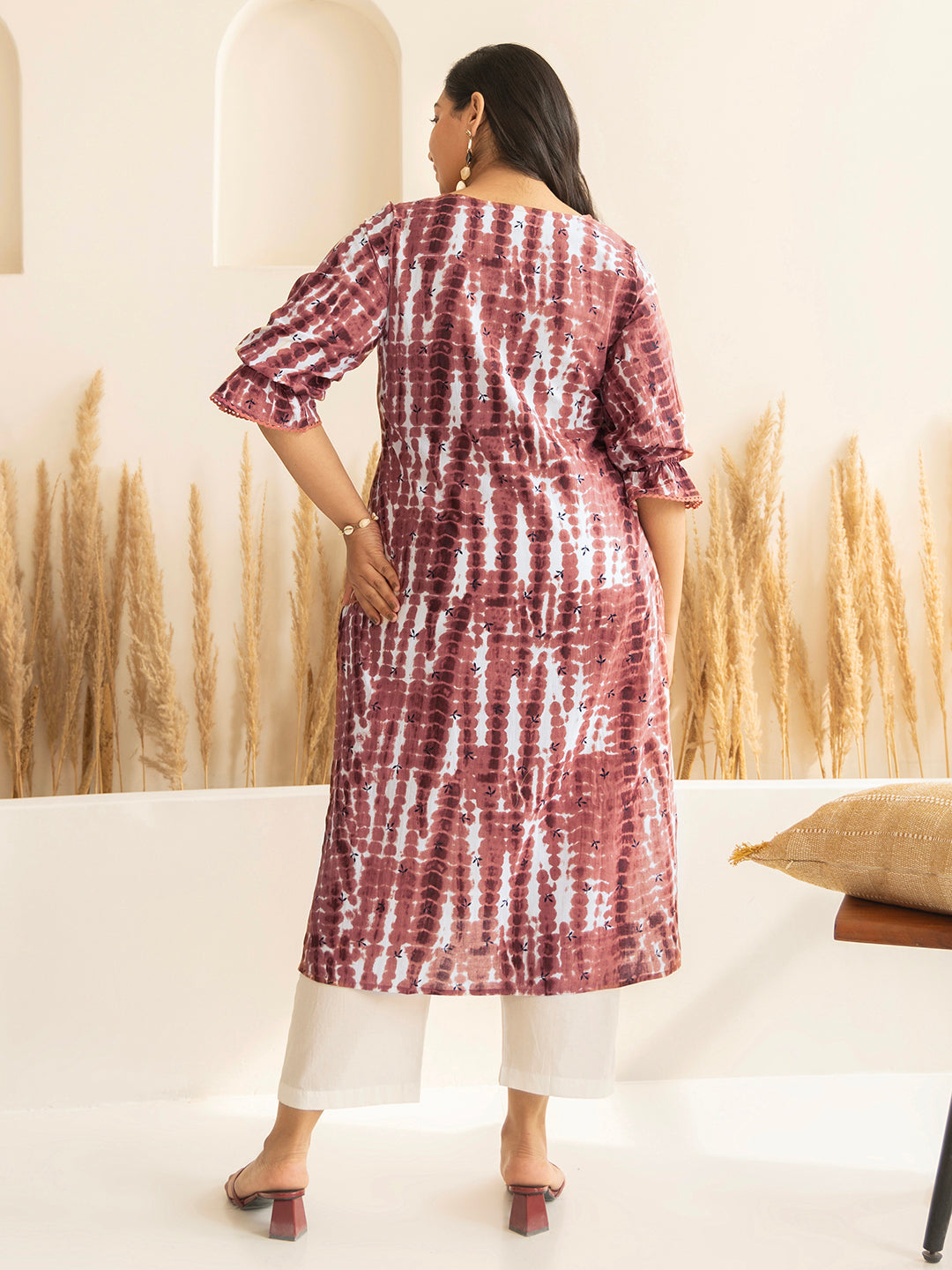 - Introducing Xl Love By Women's Light Brown Cotton Tie Dye Printed Straight Kurta. Crafted From 100% Pure Cotton, It Features A Charming Tie Dye Print. With 3/4 Puff Sleeves, A V Neck, And All Over Gathers, It's Ideal For Casual And Ethnic Wear. Elevate Your Style With This Comfortable Light Brown Kurta.