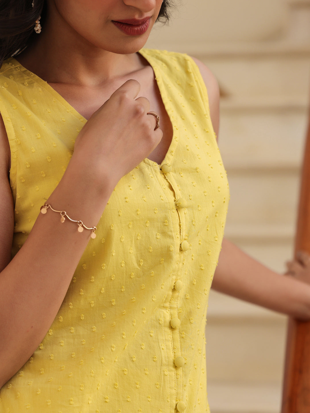 - This Yellow Dobby Cotton Kurta Bottom Set Is The Perfect Blend Of Elegance And Ease. The Kurta Features A Flattering V Neck, A Flowy Straight Silhouette That Drapes Beautifully, And A Functional Side Pocket For Added Convenience. Paired With Matching Straight Pants, This Ensemble Ensures A Chic Yet Comfortable Look. Both Pieces Are Lined With Soft Mull, Making It An Ideal Choice For All Day Wear.